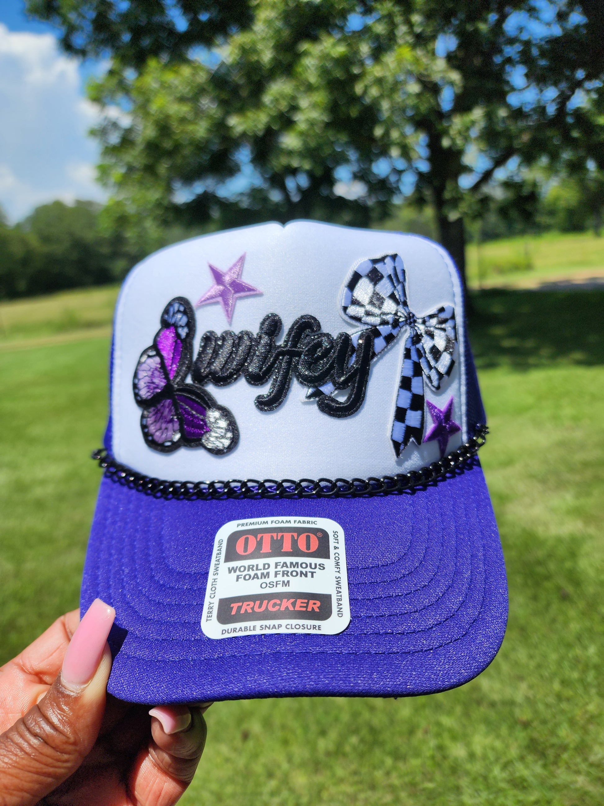 This Purple Wifey trucker hat combines vibrant style with practical comfort. Featuring a breathable mesh back and adjustable snap closure, it ensures a perfect fit for all-day wear. The rich purple color adds a bold, fashionable touch, making it an ideal accessory for casual outings or trucker-inspired looks. Durable and lightweight, this hat offers both function and flair for those who want to stand out confidently.