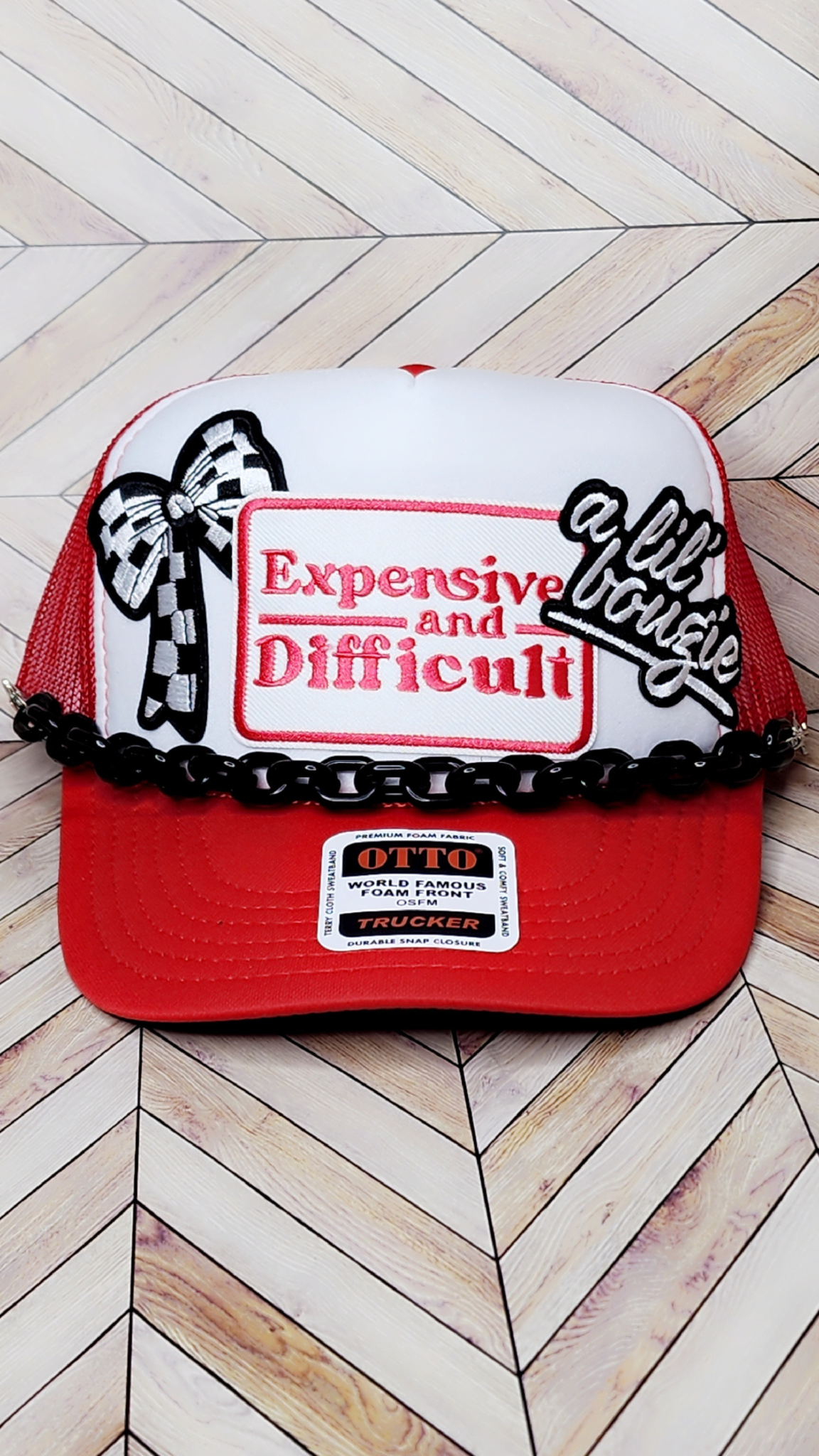 This premium red trucker hat combines bold style with high-quality craftsmanship. Designed for those who appreciate exclusivity, its durable mesh back ensures breathability while the structured front panel maintains shape. Perfect for making a statement, this hat offers both comfort and a distinguished look that stands out in any setting.